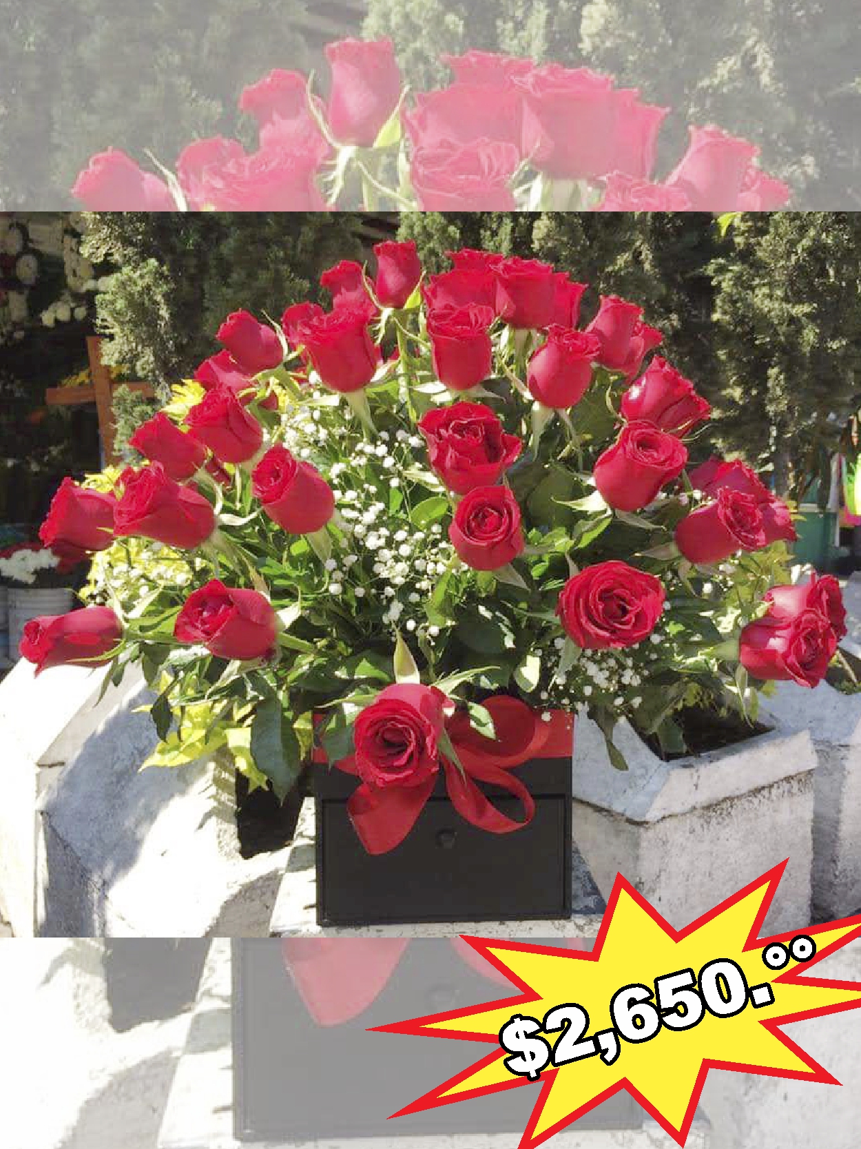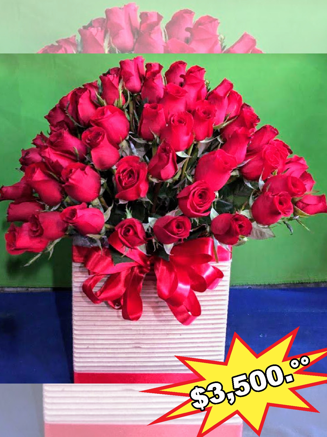 ARREGLO CAJA CUADRADA DE 50 ROSAS ROJAS