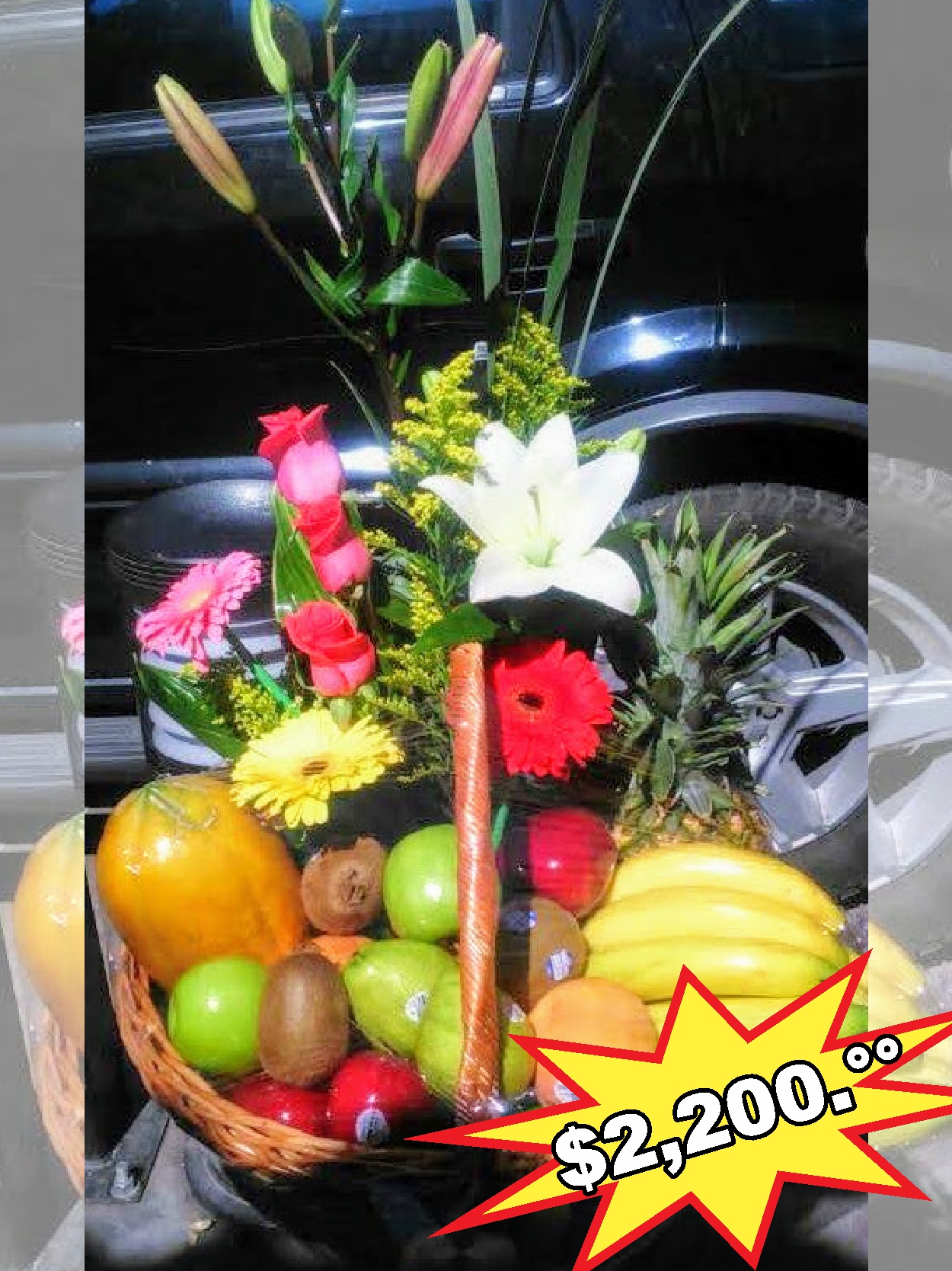 ARREGLO FLORI-FRUTAL GRANDE CON FRUTAS DE TEMPORADA PAPAYA, KIWI, MANZANAS ROJA Y VERDE